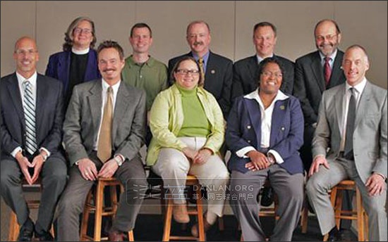 上图:同性恋、双性恋和跨性别大学校长合照。薛尔顿(前排右二)金恩(后排中)。图片来源:LGBTQ Presidents in Higher Education。